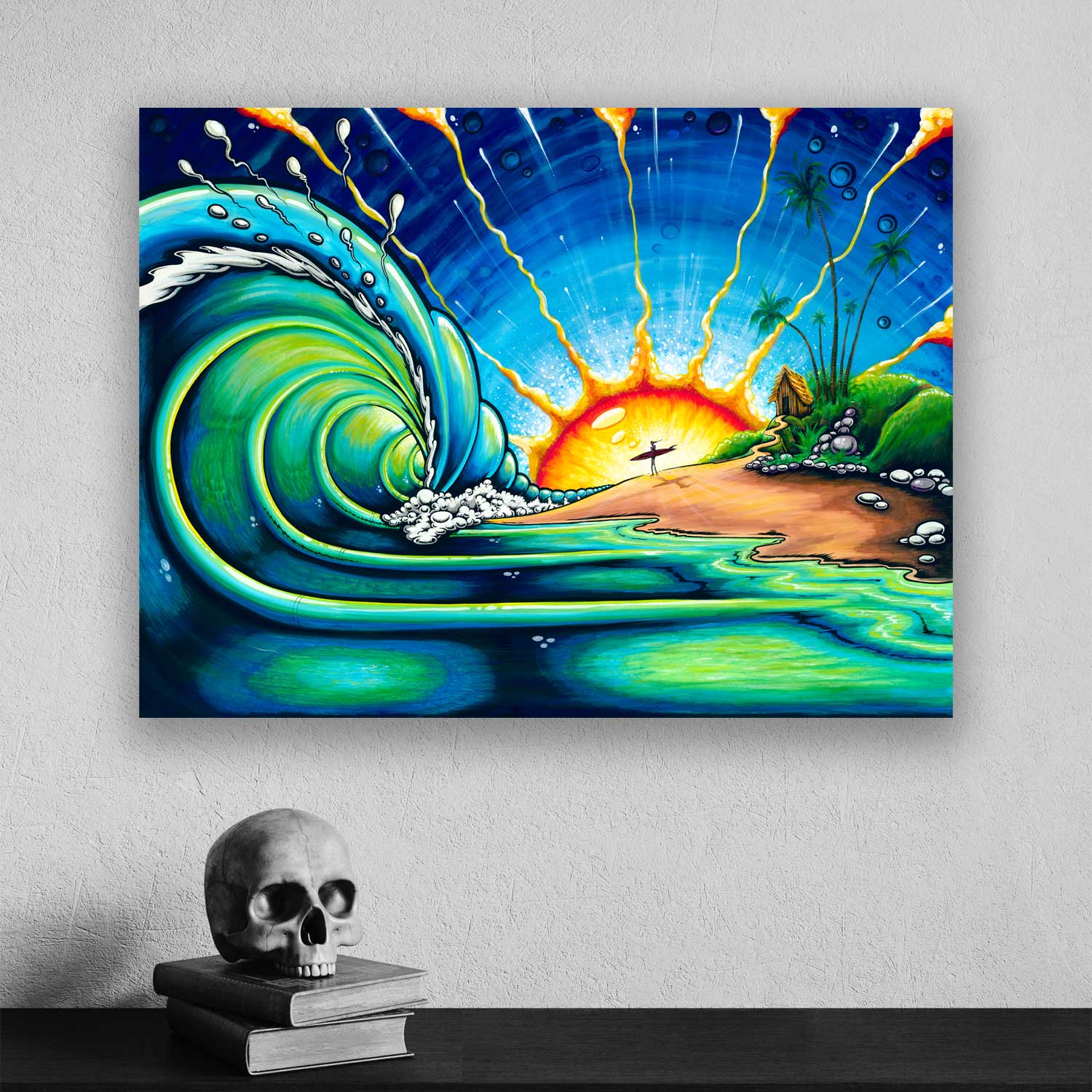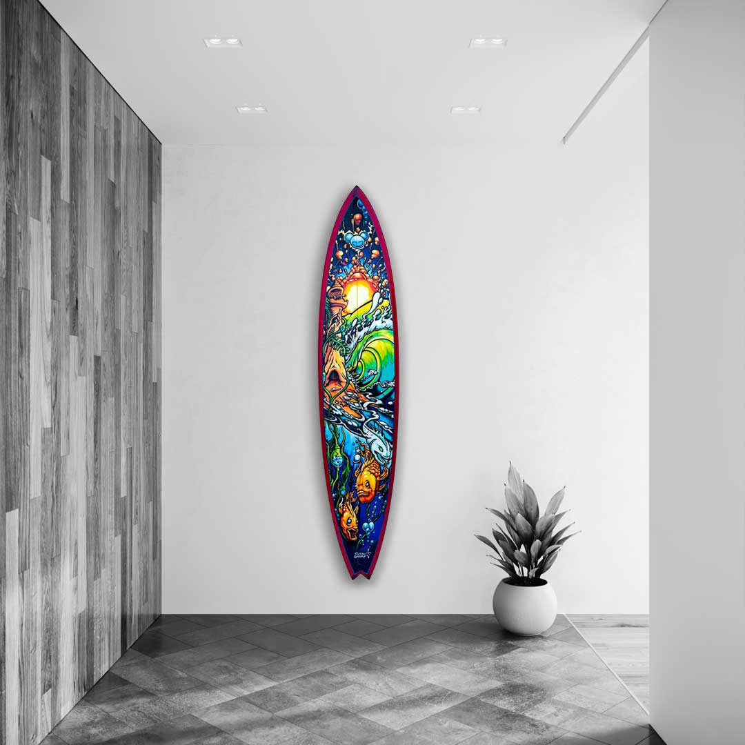 "Just put this piece up in our dining area. Looks amazing! We love that the piece has surf, mountains & camping…all the things that bring us joy. Such a colorful design."