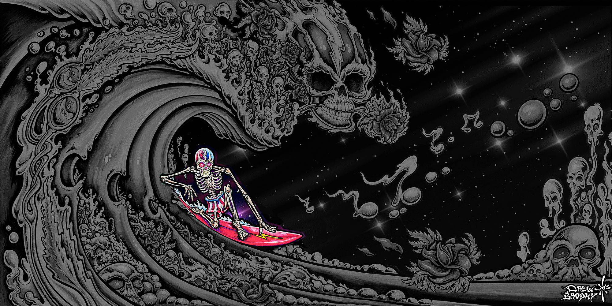 Winter Wave Skull snow art- Matt Biolos and Brophy Lib Tech Snowboard Art Collaboration