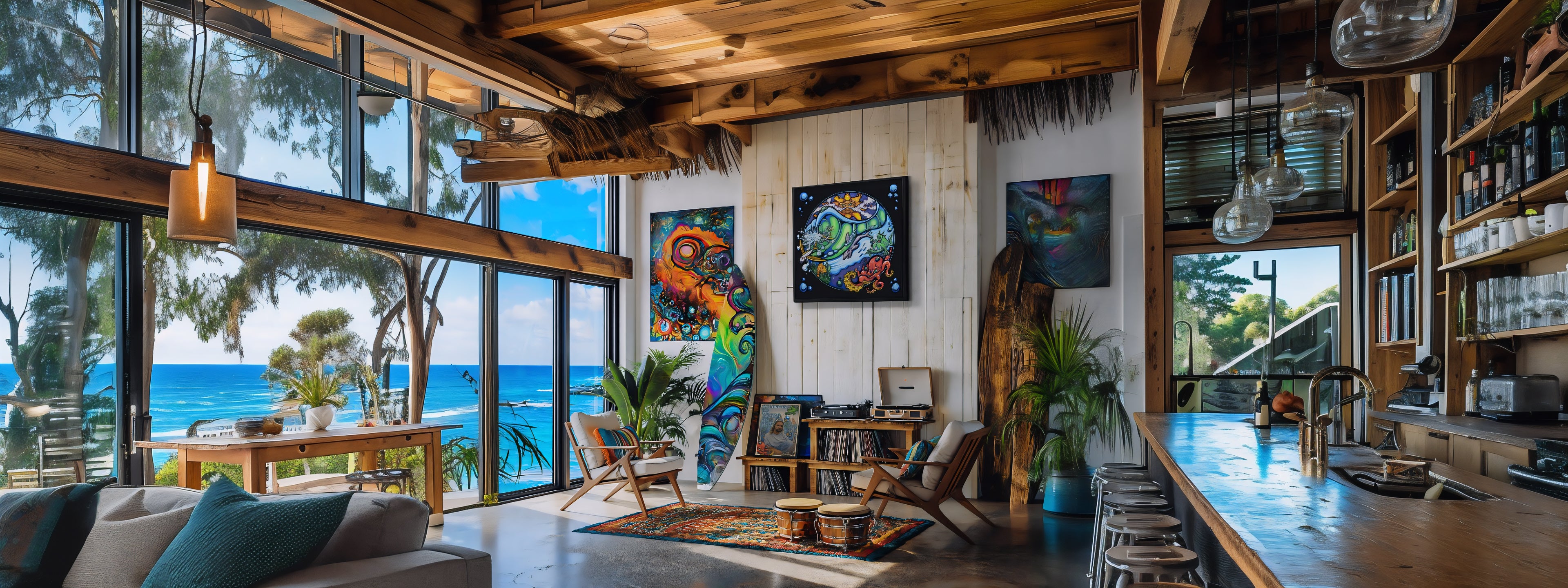 "Just put this piece up in our dining area. Looks amazing! We love that the piece has surf, mountains & camping…all the things that bring us joy. Such a colorful design."